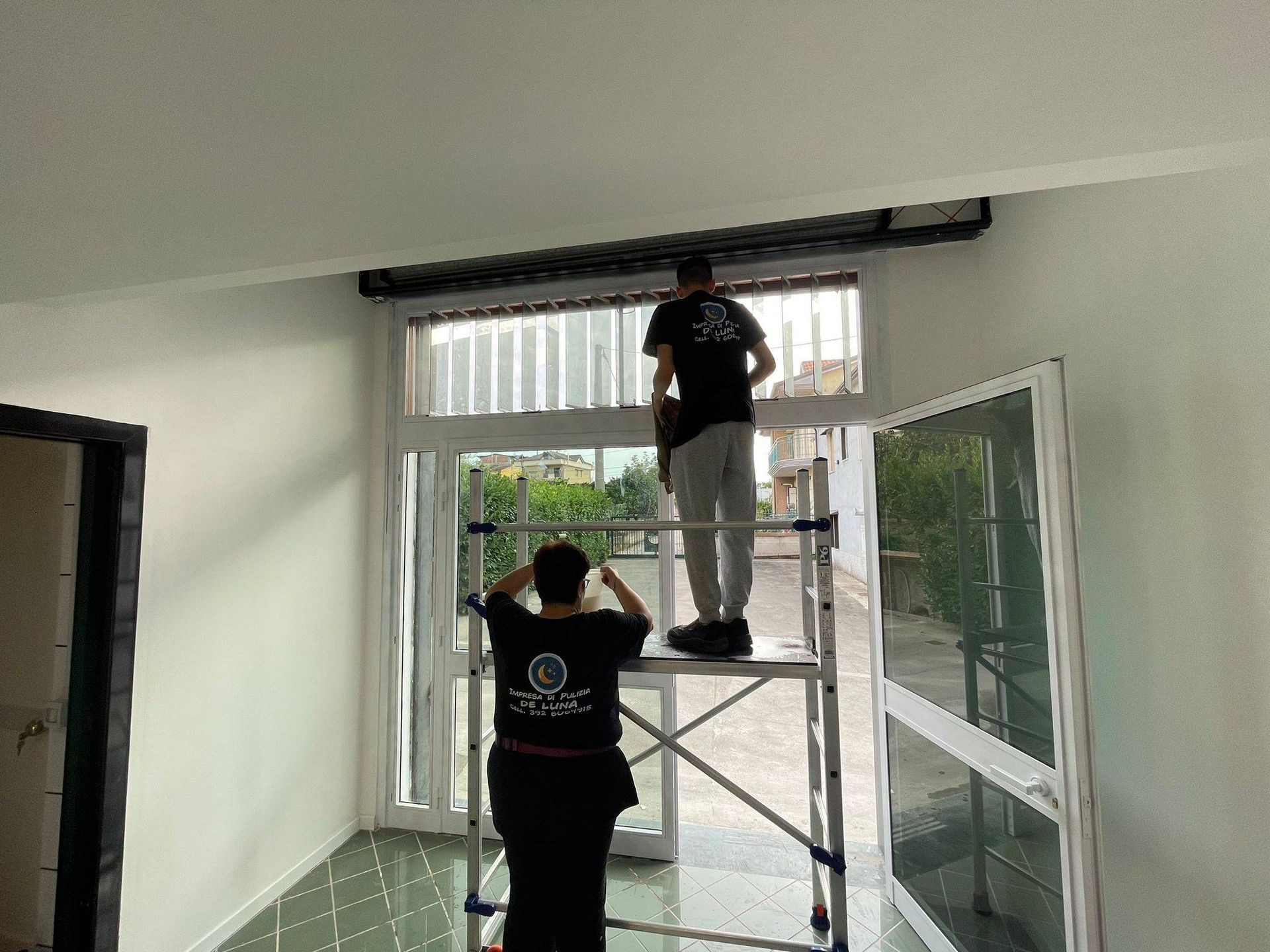Impresa di Pulizie De Luna effettua pulizia di vetri e vetrate ad alta quota con lucidatura vetri e trattamenti idrorepellenti e antistatici per una durata a lungo della pulizia e lucido dei vetri.